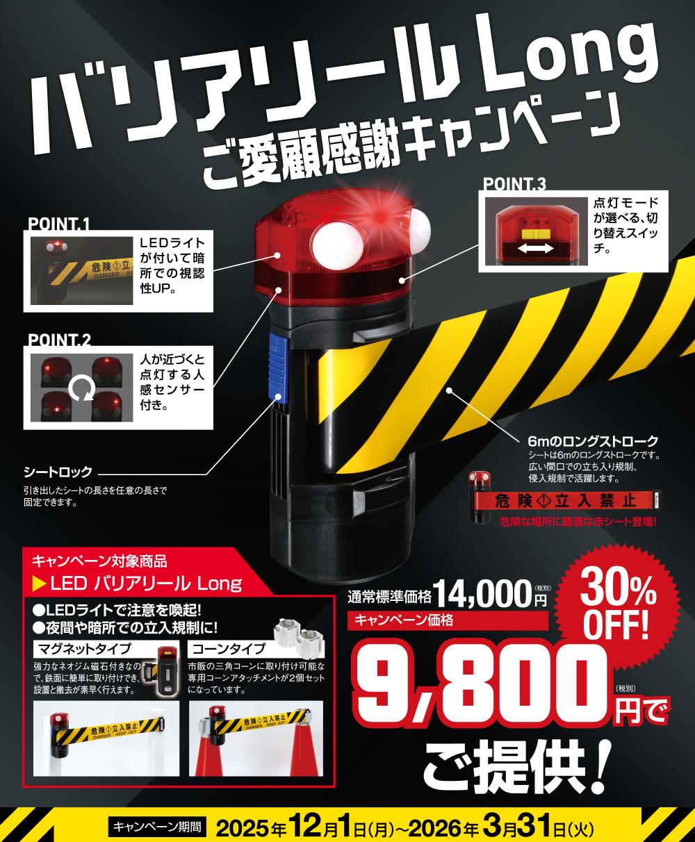 LEDライトで暗所での視認性をUPさせた「LEDバリアリールLong