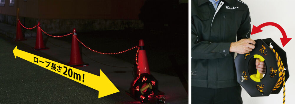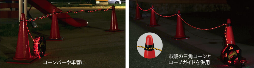 三角コーンへの取り付けも可能な、輪っか形状にもなっています。