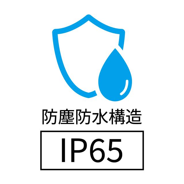 ●屋外でも安心、IP65の防塵防水構造